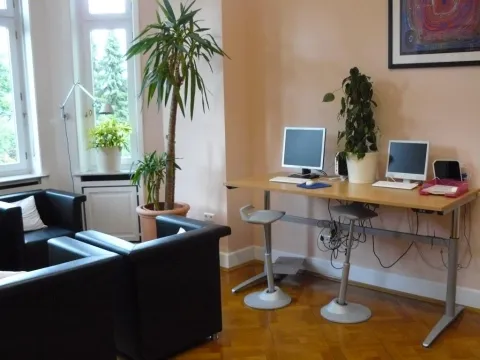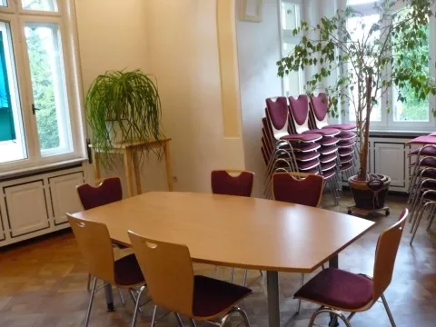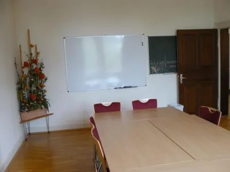 Im Konferenzraum "Edith Stein" treffen sich/arbeiten größere Gruppen von 10-15 Menschen. Er ist mit Flipchart und Whiteboard gut ausgestattet.