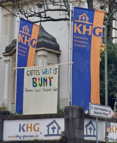 Zum Fest der Demokratie in Gießen zeigen auch wir HALTUNG und positionieren uns:  FÜREINANDER statt Gegeneinander | ZUSAMMENHALT statt Spaltung | TOLERANZ  statt Ignoranz | NÄCHSTENLIEBE statt Hass | RESPEKT statt Gewalt | WÜRDE statt Rassismus. Denn Gottes Welt ist bunt! Und Nächstenliebe hat keine Grenzen!